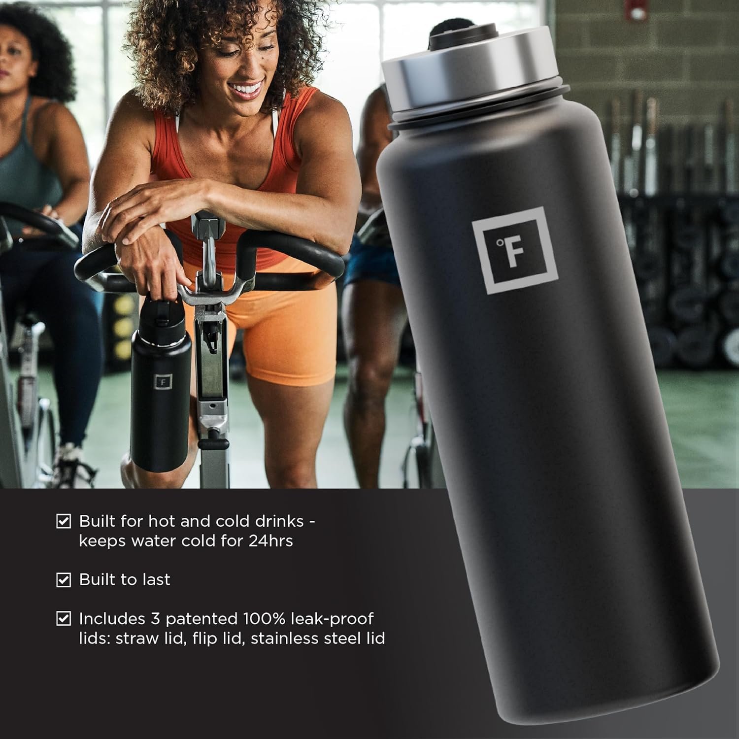 • 3 LIDS: YES, Iron Flask comes with THREE different 100% LEAK PROOF lids. Carabiner Straw Lid with 2 Straws, Flip Lid, and a Stainless Steel Lid! *NOTE: The stainless steel lid is plastic from inside and stainless steel from outside*