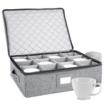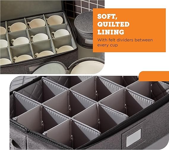 • RELIABLE PROTECTION. STORAGELAB’s china storage containers are made to protect your coffee cups and mugs. Keep them away from the elements with a hard shell case and quilted soft padding.
